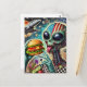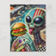 Carte Postale Amusant Alien Manger Cheeseburger Encaustic Collag