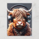 Une jolie vache écossaise des Highlands écoute de la musique avec des écouteurs