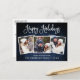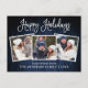 Moderne Fun Calligraphie Script Joyeux Vacances Famille 3 Photo Carte postale - Rustique Pays Bleu Bois