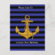 Carte Postale Ancre dorée sur bandes bleues avec couleur personn