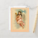 Belle image vintage d'un ange-enfant aux cheveux foncés vêtu de rose avec une couronne fleurie jaune sur la tête et portant sa harpe.