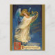 Cette carte postale présente une illustration vintage d'un ange jouant de la harpe avec des messages de Noël.