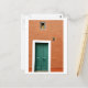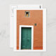 Notre carte postale présente une photo de la porte d'entrée d'une petite maison à Culross, Fife, Ecosse. Les murs sont peints en orange brûlé et la porte est verte. La plaque sur le mur date le bâtiment de la maison à 1676. Nous avons ajouté la célèbre peinture d'ange chérubin de Raphaël à la toute petite fenêtre.