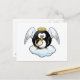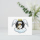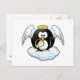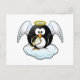 Voici une photo d'un manchot d'ange dessiné. Le pingouin tient une harpe, a des ailes d'anges et un halo.