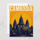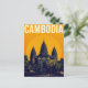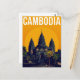 Celebrate the ancient majesty of Cambodia with this striking retro travel postcard. The design features the world-famous Angkor Wat temple silhouetted against a brilliant orange sun, capturing the dramatic beauty of the country's most iconic landmark. The bold colors and stylized, minimalist aesthetic evoke the classic travel posters of the mid-century era. This piece is perfect for those who love Southeast Asian history, architecture, or simply collecting beautiful, evocative travel art. It’s an excellent way to commemorate a journey or send a truly unique greeting.