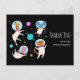 Carte de remerciement avec une image d'animaux astronautes avec des casques transparents flottant dans l'espace. Girafe, souris, chat et lapin. Tellement adorable et amusant.