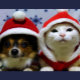 Chien et Chat Mignons avec Chapeaux de Noël