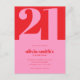 Carton d'invitation d'anniversaire 21 ans minimaliste moderne avec un design simple et une typographie chic élégante de couleur rose et rouge.