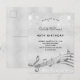 Une carte d'invitation branchée et moderne pour 40e anniversaire. Un arrière - plan faux argenté, avec des notes de musique, des lettres de couleur noire.Décoré avec de la poussière de parties scintillant fausse. Personnalisez et ajoutez un nom et des informations de partie. Retour : arrière - plan argent, design de carte postale. Conseil : Si vous ne voulez pas qu'il ressemble à une carte postale, cliquez sur customiser, allez à l'arrière et retirez le séparateur et le timbre postal.