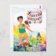 Carte Postale Anniversaire au thème de fleurs arc-en-ciel avec P