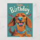 Carte d'anniversaire de Basset. Un Basset souriant souhaite un joyeux anniversaire. Parfait pour tous les amoureux de Basset et propriétaire de Basset.