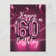 Carte Postale Anniversaire des 60 ans Rose Néon Chic Vibrant