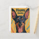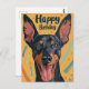 Vœu d'anniversaire Doberman. Un Doberman souriant souhaite un joyeux anniversaire. Parfait pour tous les amoureux et propriétaires de Doberman.