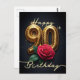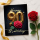 Célébrez un magnifique événement avec cette superbe carte de bon anniversaire pour un 90e anniversaire. Les chiffres dorés "90", gravés de motifs tourbillonnants, brillent au centre. Nichée gracieusement en dessous, une rose rouge vibrante, aux pétales en pleine floraison, symbolise une beauté intemporelle. Une dispersion de délicate poussière dorée ajoute une touche de magie festive, tandis que l'élégante écriture "Joyeux 90e Anniversaire" coule avec un charme sophistiqué. Rappelez-vous que le texte est entièrement personnalisable, vous permettant de personnaliser cet hommage magnifique.