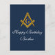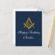 Carte d'anniversaire bleu marine, Franc-Maçon Joyeux Anniversaire. Carte postale d'anniversaire avec équerre et compas maçonnique. Veuillez la personnaliser avec votre propre texte ou la supprimer et écrire vos propres mots à la main.
