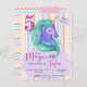 Carte postale d'anniversaire Licorne Magique Pastel Chevron | Invitation de fête Licorne Arc-en-ciel.