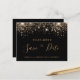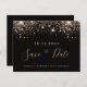 Une petite fille et tendance Enregistrer la carte Date pour une fête d'anniversaire de 40e (ou tout âge). Un arrière - plan noir décoré de parties scintillant en faux or. Modèles pour une date, un nom et un texte. Lettres de couleur dorée. Le texte : Save the Date est écrit avec un grand script de style à la main tendance.