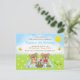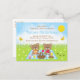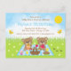Cette invitation d'anniversaire mignonne et fantaisiste présente des ours adorables pique-niquant sur une nappe à carreaux bleue avec des friandises comme du miel, de la pastèque, de la confiture de fraise, de la limonade et de la tarte. En arrière-plan, on voit un ciel bleu vif et du soleil, des papillons et des marguerites. Le texte combine des polices décoratives et serif pour un look élégant et moderne. C'est parfait pour une fête d'anniversaire de printemps ou d'été.