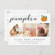 Cette carte de voeux d'annonce de naissance de bébé est parfaite pour présenter votre petit bébé d'automne ! Vous pouvez également l'envoyer comme carte de vacances de Thanksgiving et carte de remerciement de baby shower ! Le design simple mais élégant présente trois de vos photos de famille préférées et un mélange de typographie moderne et élégante et de script manuscrit. Il y a également une image de citrouille mignonne pour accompagner le texte.
