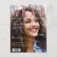 Faites connaître à tout le monde votre journée spéciale avec glamour et raffinement! Ce faire-part moderne branché de graduation style magazine contient un titre de parties scintillant glam mode en or rose et scintillants. Le dos est blanc avec un mélange d'or, de rose et de violet. Remplacez par votre photo et décorez votre visage d'une superposition brillante pour compléter encore plus votre beauté !