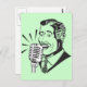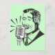 Annonciateur radio vintage rétro parlant ou chantant dans un vieux microphone. Noir et blanc. Moustache. Grand sourire. Vous pouvez changer l'arrière - plan en n'importe quelle couleur.