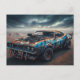 Blue Classic 1969 Chevy Camaro avec souffleur et taches de rouille dans le désert pendant l'apocalypse.