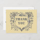Express votre appréciation à vos fidèles clients avec cette carte postale vintage de bouclier gris. Cette conception comporte un bouclier orné entouré de plantes viticoles. Le centre de ce bouclier contient les mots "Merci" en gros caractères gris. Le dos de cette carte postale offre un mot d'appréciation supplémentaire et le nom de votre entreprise qui peut être facilement personnalisé.