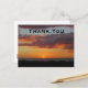 Faites savoir à quelqu'un combien vous les appréciez avec cette carte postale peu coûteuse. La photo qui orne cette carte capture le coucher de soleil sur l'océan Pacifique. Le coucher du soleil illumine le ciel et sous les nuages d'orange vif avec une bande de bleu gris encore visible entre les nuages. "Merci" peut facilement être customisé si vous le désirez.