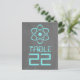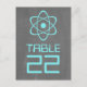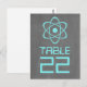 Carte postale avec un simple symbole atomique en turquoise sur un tableau de bord à l'allure arrière - plan. Cette carte de table geek et amusante est parfaite pour le couple passionné de science ! Facile à customiser, il suffit d'ajouter le ou les numéros de table appropriés dans l'espace prévu. Cliquez sur "Customiser" pour trouver d'autres options de personnalisation.