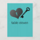 Merci à vos invités mariages avec l'élégance de cette édulcorante serrure de coeur et numéro de table clé Carte postale en turquoise. Cette carte postale unique est dotée d'une serrure en forme de coeur à l'allure métallique et d'une clé assortie sur un arrière - plan en bois de façade en art numérique. Ce design charmant serait le choix idéal pour un mariage sophistiqué. Facile à customiser, il suffit d'ajouter le numéro de tableau dans le champ de texte fourni. Cliquez sur le bouton "Customiser" pour trouver d'autres options de personnalisation.