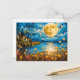 L'aquarelle Abstraite d'une pleine lune lumineuse réfléchissant dans un lac calme. Le ciel nocturne brille dans les tons bleu profond et jaune doré, créant un paysage tranquille et rêveur.