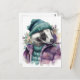 Carte Postale Aquarelle adorable Badger