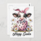 Carte Postale Aquarelle adorable Vache de Pâques dans l'oeuf