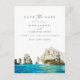 Cette sauvegarde de la date carte postale comprend une aquarelle de la tropicale Cabo San Lucas, les plages du Mexique et un support simple carte postale pour faciliter l'envoi.