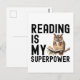 Carte Postale Aquarelle Chouette ver de livre Lecture dire