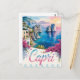 Cette carte postale en aquarelle enchanteresse capture la beauté sereine de Capri, en Italie. La brosse délicate met en valeur les falaises emblématiques de l'île, les eaux turquoise vives et la végétation méditerranéenne luxuriante. Parfait pour les admirateurs du charme des îles italiennes et de l’aquarelle, cette pièce apporte une touche de l’allure intemporelle de Capri à votre collection.