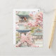 Cette carte postale capture une scène tranquille avec une pagode traditionnelle de style asiatique, sur fond de fleurs de cerisiers roses en fleurs. La technique délicate de l'aquarelle met en évidence les détails architecturaux complexes de la pagode tout en mettant l'accent sur la beauté douce et éphémère de la sakura environnante. Inspiré par l'esthétique de l'Asie de l'Est, cet ouvrage incarne l'harmonie entre les structures et la nature artificielles, reflétant les thèmes culturels de sérénité et la nature éphémère de la vie.