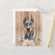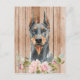Illustration de portrait d'aquarelle de chien réaliste Doberman avec un joli spray floral sur l'arrière - plan de panneau de bois faux.