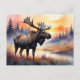 Carte Postale Aquarelle d'orignal au lever du soleil