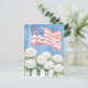 Cette belle carte postale présente une aquarelle vibrante illustrant un drapeau américain classique agitant fièrement au-dessus d'une charmant palissandre blanche, accentuée par des hydrangées blanches luxuriantes contre un ciel bleu clair. C'est une façon intemporelle et élégante de partager votre fierté nationale pour le 4 juillet, le Jour du Souvenir, ou toute occasion. Parfait pour envoyer des salutations chaleureuses à Americana !