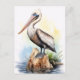 Cette superbe illustration d'aquarelle saisit l'élégance et le charme d'un pélican en plein vol, avec ses ailes gracieuses étirées et ses plumes délicatement peintes dans des teintes douces. La fluidité du milieu aquarelle reflète parfaitement la grâce naturelle du pélican et sa connexion à son environnement côtier.