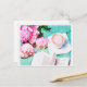 Éclairez la journée de quelqu'un avec cette jolie carte postale de pivoine rose rose féminine ! Un latte et un bon livre complètent le design cosy !