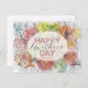 Cette carte postale de la Fête des Mères est un magnifique mélange d’élégance et de chaleur, conçu pour transmettre des voeux sincères. L'avant de la carte postale est ornée de motifs floraux complexes, chaque détail méticuleusement conçu pour créer un affichage harmonieux de l'affection. Une myriade de couleurs se fondent doucement l'une dans l'autre, peignant un tableau de fleurs en fleurs symbolisant l'amour et l'appréciation florissants pour les mères. Au centre, encastrés dans une lueur éthérée, les mots "HAPPY Mother’s DAY" sont inscrits dans une typographie gracieuse, offrant un message aussi tendre que la touche d’une mère. La carte postale présente des motifs floraux complexes qui couvrent l'ensemble. Un mélange de couleurs douces, dont les roses, les jaunes, les verts et les bleus, crée un effet visuel esthétique agréable. Les motifs floraux sont détaillés et complexes, donnant à la carte un aspect sophistiqué. Au centre se trouve une zone ovale avec un ombrage plus léger où "HAPPY Mother’s DAY" est écrit en police élégante. Il dégage chaleur et affection grâce à ses éléments de conception, ce qui le rend adapté pour transmettre des voeux sincères le jour de la fête des mères.