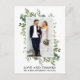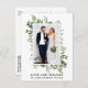 Elégante aquarelle vert Mariage Photo Merci carte postale comprend des feuilles d'eucalyptus et d'autres belles verdure botanique.