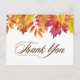 Envoyez des remerciements avec cette carte postale de remerciement personnalisable. Il présente des feuilles de chute d'aquarelle avec calligraphie blanche. Personnalisez en ajoutant vos détails. Cette carte postale rustique à l'automne est parfaite pour les mariages, anniversaires, baby showers et douches nuptiales.