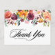 Envoyez un remerciement aux invités et aux clients avec cette carte postale de remerciement personnalisable. Il présente une guirlande aquarelle de fleurs orange, bordeaux, blanches et roses aux accents de verdure. Personnalisez ce carte de remerciements floral d'automne en ajoutant vos propres détails d'événement. Cette carte postale aquarelle vous remercie est parfaite pour les mariages de automne, douches nuptiales, baby showers et autres événements. mariage de automne,