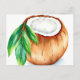 Carte Postale Aquarelle fraîche et vive noix de coco sur blanc