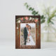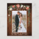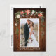 Bois rustique Elégant Aquarelle Hiver Floral Bois nouvellement marié Photo Marié & Joyeux Noël La carte postale comprend de belles poinsettias rouges aquarelle, verdure botanique, feuillage hivernal, baies sèches, roses blanches, coton, cônes de pin et baies bleues. Bois rustique et lumières à cordes.