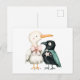 Carte Postale Aquarelle illustrant le Mouette et le Corbeau