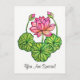 Carte Postale Aquarelle Lotus rose avec Bureaux et Feuilles